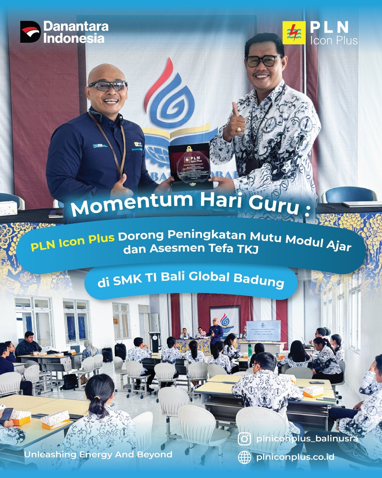 Dalam momentum peringatan Hari Guru, PLN Icon Plus SBU Regional Bali Nusa Tenggara menunjukkan komitmen nyatanya dalam mendukung peningkatan kualitas pendidikan vokasi di Bali. Bertempat di SMK TI Bali Global Badung, PLN Icon Plus turut berpartisipasi dalam Workshop Pengembangan Modul Ajar dan Asesmen khususnya pada kompetensi keahlian Teknik Komputer dan Jaringan (TKJ) dengan pendekatan Teaching Factory (Tefa).