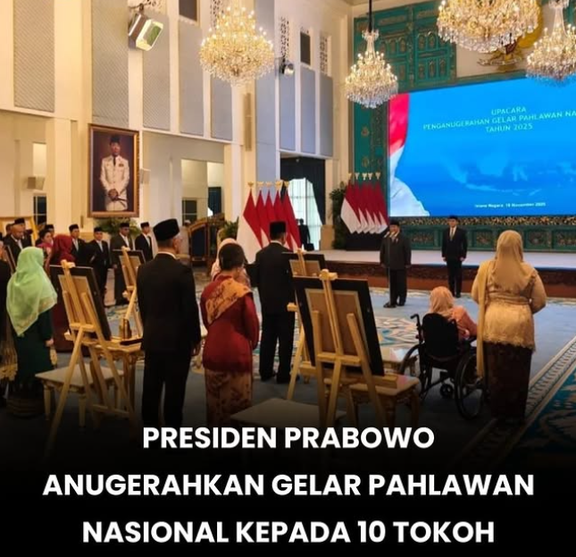 Jakarta — Dalam suasana khidmat memperingati Hari Pahlawan, Presiden Republik Indonesia Prabowo Subianto menganugerahkan gelar Pahlawan Nasional kepada sepuluh tokoh bangsa yang dinilai memiliki jasa luar biasa dalam perjuangan, kepemimpinan, serta pengabdian terhadap rakyat dan negara. Upacara penganugerahan berlangsung di Istana Negara, Jakarta, Senin (10/11), disaksikan oleh jajaran menteri, pejabat tinggi negara, keluarga penerima penghargaan, serta perwakilan TNI-Polri.
